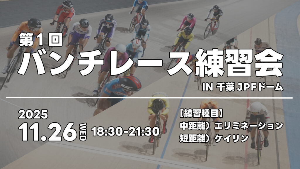 国内でも数少ない木製250mバンクで、集団走行練習する機会を増やすためにバンチレース練習会を開催することにいたしました。毎月種目を変えて実施する予定です。ぜひご参加ください。 🍁11月バンチレース練習会について 《概要》 ◆場所千葉JPFドーム◆日時... ピックアップ