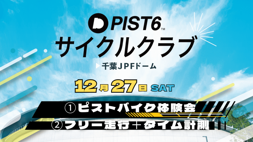 2026年1月における千葉JPFドームのイベント日程をお知らせいたします。 ■1月のPIST6イベントスケジュール ●自転車博物館(ドーム無料開放日) 1月10日(土),1月11日(日)/ 開場 10:00~16:00※入場無料、チケット取得なしでお楽しみいただけます。また、1月11日(... ピックアップ