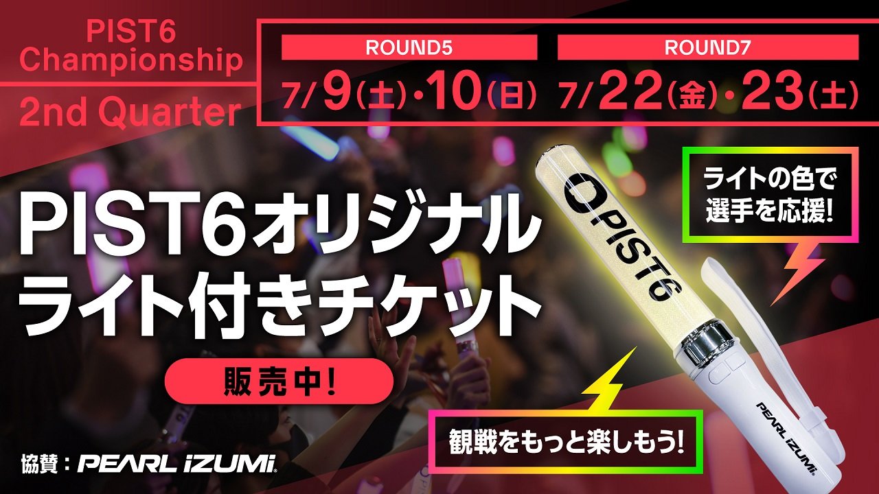 2022年5月21日(土)、5月22日(日)に開催される「PIST6 Championship 2022-23」 ファーストクォーター ファイナルラウンドにおいて、「PIST6オリジナルライト」がついてくる観戦チケットを発売中です。お気に入りの選手の色にライトを点灯させて、選手を熱く応援しましょう!