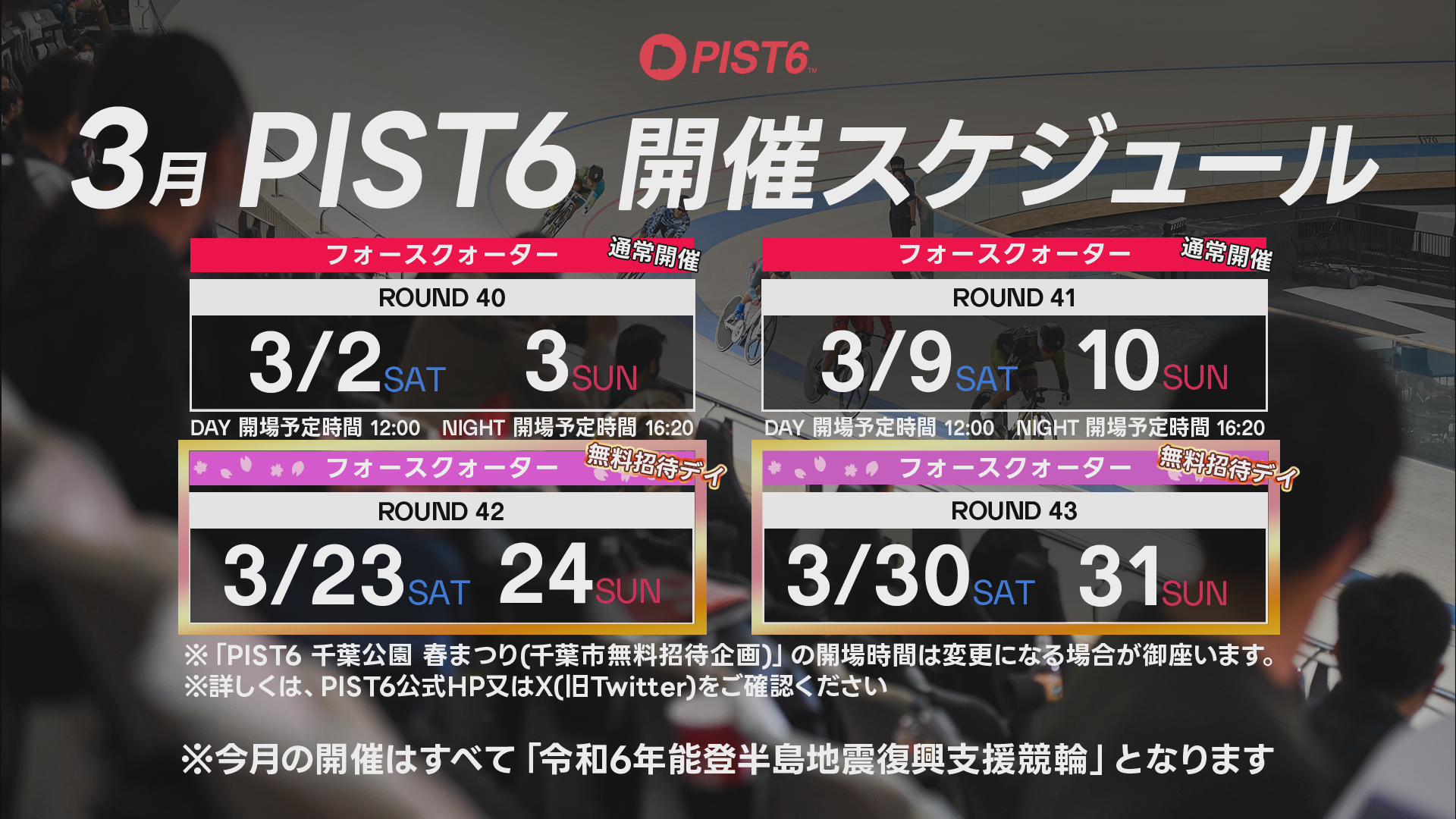 3月23日(土)-24日(日)開催【Round42】及び3月30日(土)-31日(日)開催【Round43】では、年に一度の特別開催として対象4日間で合計10,000名様を無料でご招待する『PIST6 千葉公園 春まつり』を実施致します。