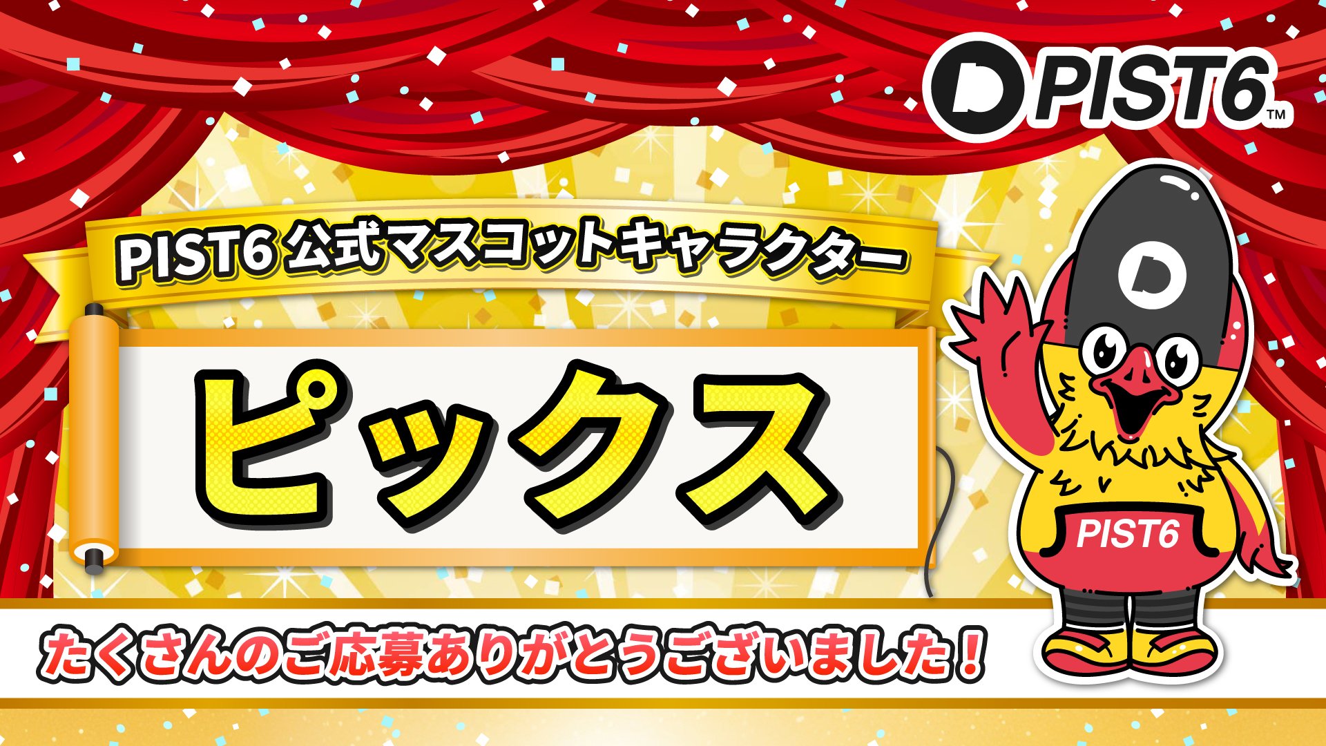 3月の初お披露目以降、皆様から募集しておりました「PIST6公式公式マスコットキャラクターの名前」が【ピックス】に決定致しました。