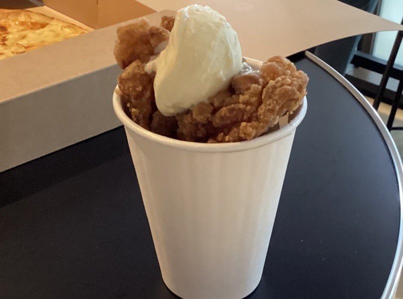| 唐揚げにアイスのトッピング?!「甘しょっぱくて美味しい」とのこと。(お客様談) |