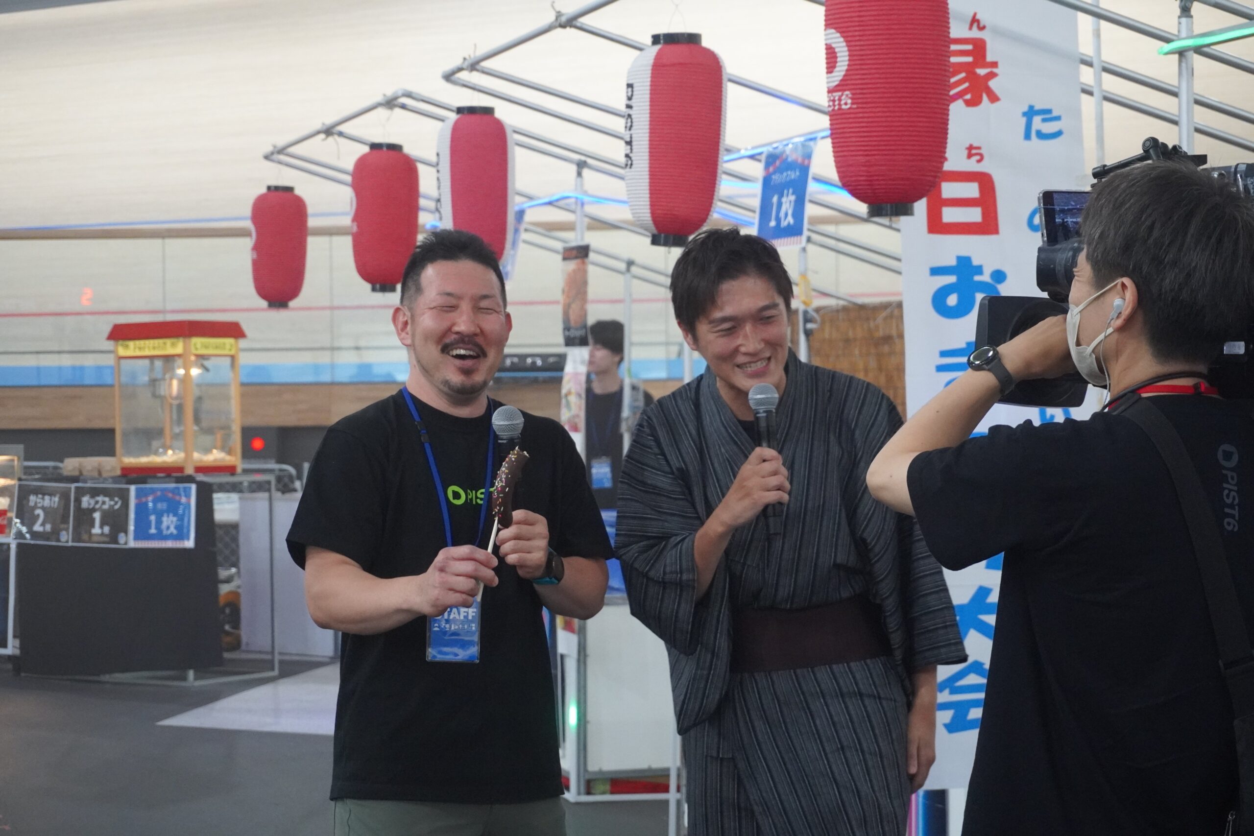 さらに、伊藤信選手(大阪)と守谷陽介選手(岡山)が両日ナイトに登場!分かりやすいレースの解説はもちろん、普段なかなか見ることの出来ないグルメリポートにも挑戦し、会場を大いに沸かせてくれました。