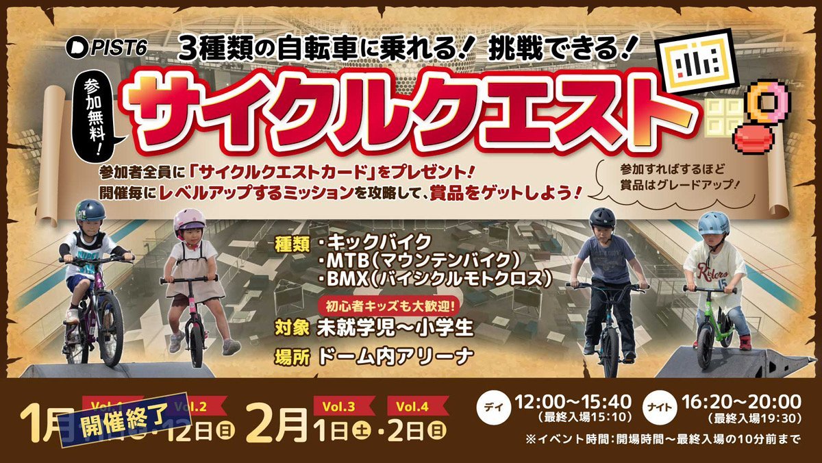 1/11(土)-12(日),2/1(土)-2(日)計4日間のPIST6開催ではゲーム型自転車イベント『サイクルクエスト』を実施いたします。