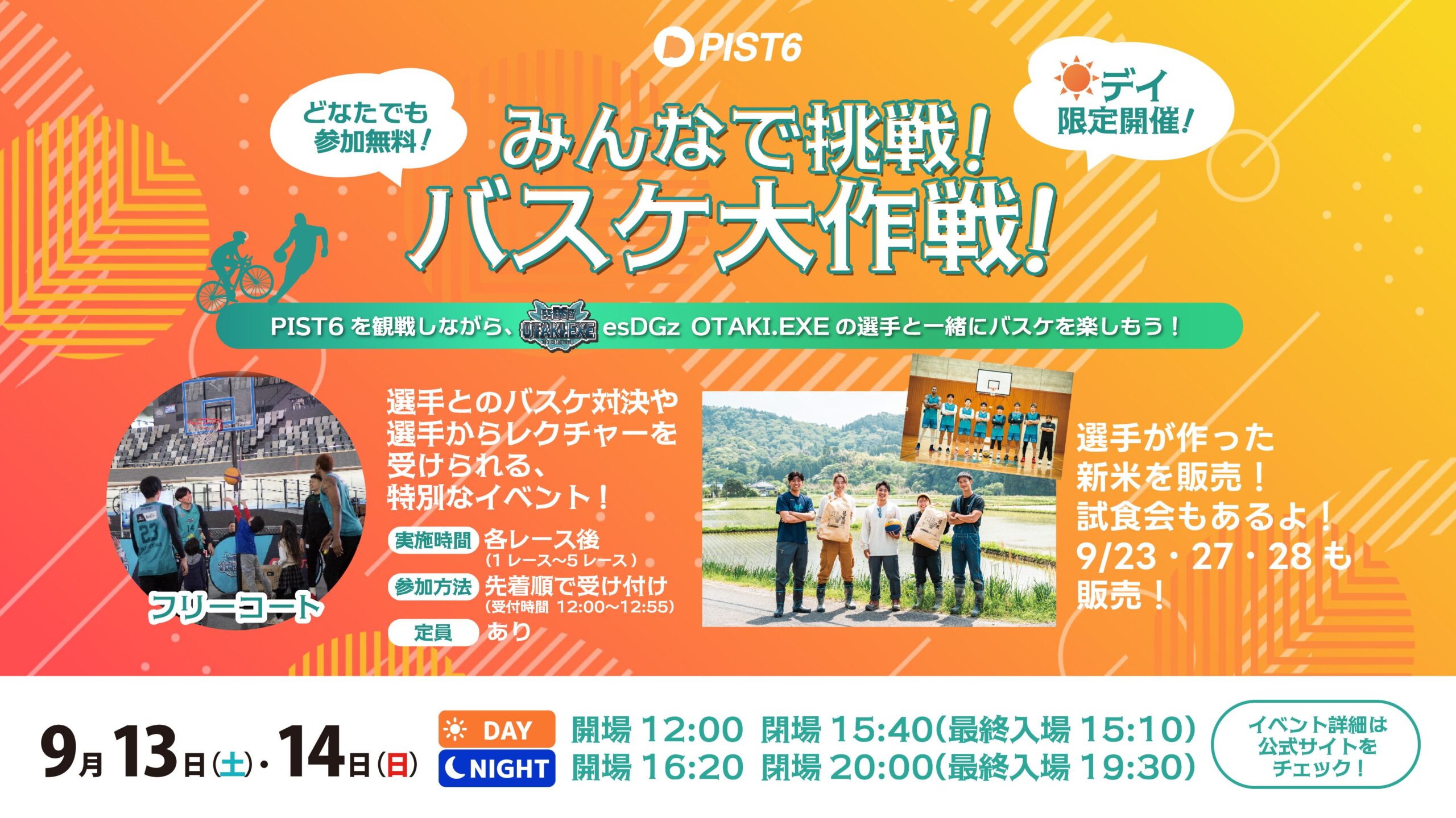 9/13(土)-14(日)のPIST6開催ではバスケットボールイベント第2弾『みんなで挑戦!バスケ大作戦!』を開催いたします。