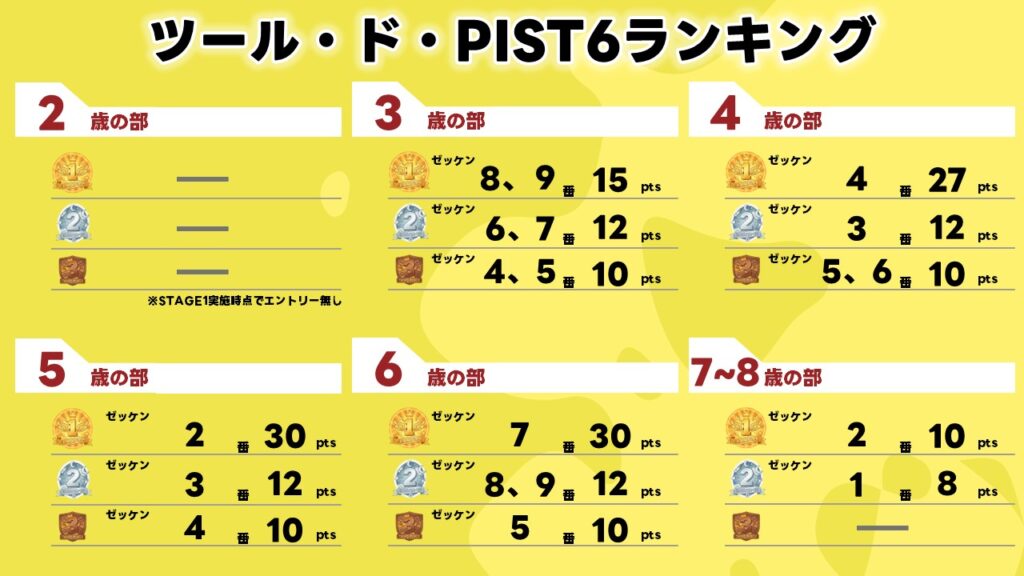 2歳の部、3歳の部、4歳の部、5歳の部、6歳の部、7~8歳の部