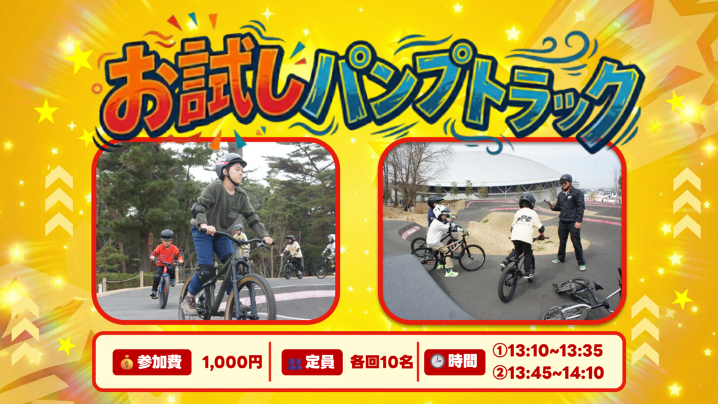 パンプトラックに挑戦してみたい方のための体験プログラムです。PPC走行に必要な基本動作ができているかをチェックします。レベルに応じて本コースまたは練習コースへご案内します✨