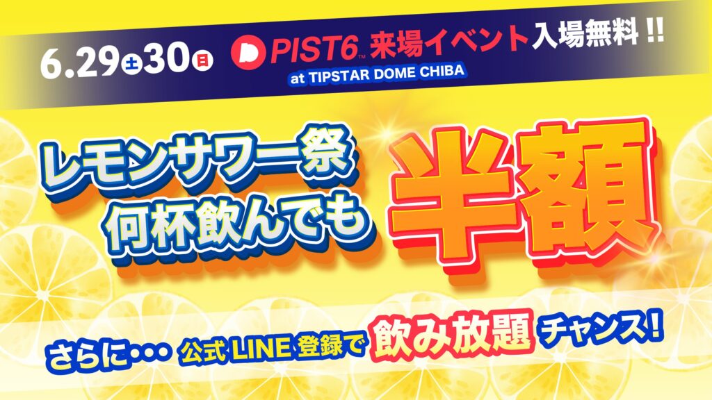 6月29日(土)-30日(日)のPIST6開催では『PIST6 レモンサワー祭』と題し、場内飲食... -