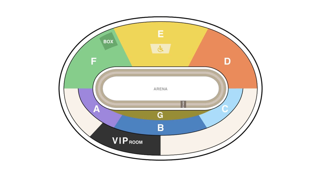 選択したエリアから座席と数量を選択してください。座席の種類は、レギュラーシート、プレミアムシート、BOXシート、車いすエリアがございます。